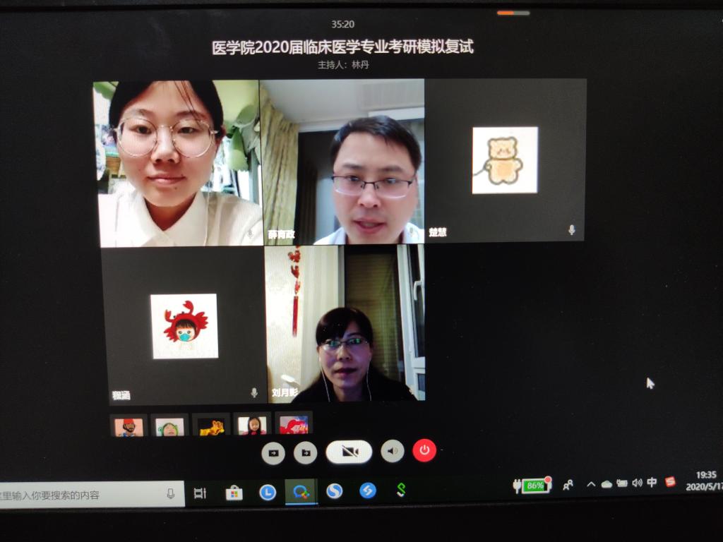 于5月17日晚7时通过企业微信网络视频的方式,开展了考研线上模拟复试。附属医院儿科主任医师、副教授、质量管理处副处长刘月影,消化内科主任、主任医师薛育政以及学院临床1501班主任周跃涛三位老师应邀担任面试评审,91制片