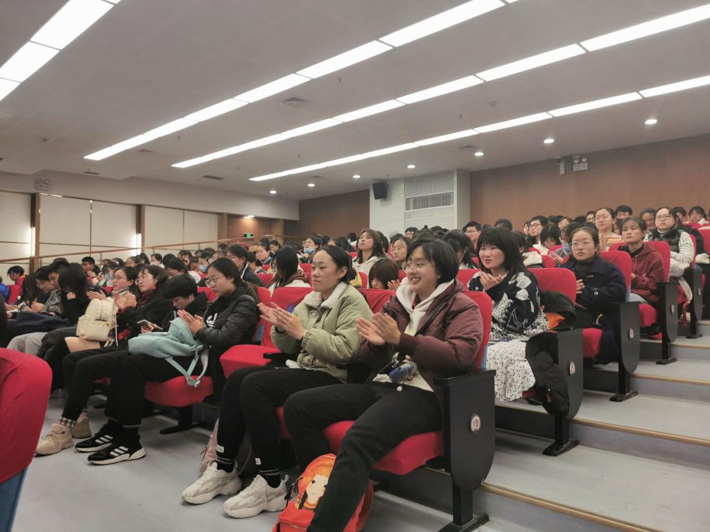 党委书记向琪,院党委副书记、副院长奚晓岚,院长助理、公共卫生与预防医学系主任程洋、院教师发展中心主任吴郁、院全体辅导员和近400名本科生到场听课。
