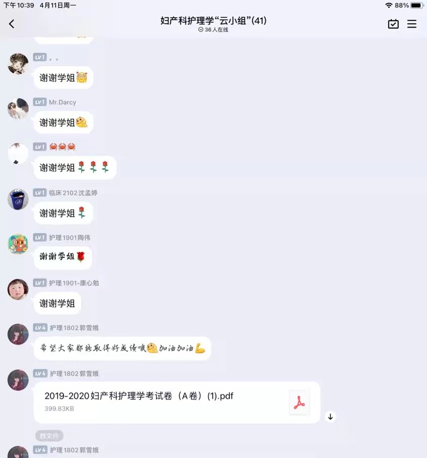 学工办在广泛征求意见后,以“科科有指导,问问有解答”为宗旨,为低年级同学们搭建了英语、有机化学、病理学等8个学习“云小组”,并邀请了数位学科成绩优秀的高年级同学担任“领学课代表”,分享课程学习经验的同时,为学弟学妹们答疑解惑。“云小组”组建一周,参与人次即达360多次,同学们在群里共同探讨,掀起了一波又一波“提问热潮”。