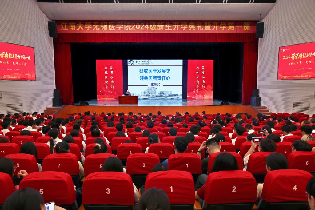 、附属医院的教师带来题为《研究医学发展史 领会医者责任心》的开学第一课。