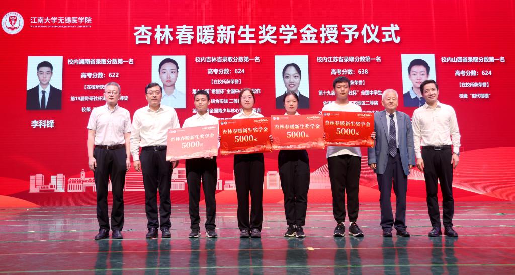 临床医学本科招生,有4个省市录取了校内排名第一的最高分。为表彰优秀,树立典型,学院继续特设“杏林春暖”新生奖学金,邱贵兴、马鑫、笪学荣、孙宁共同为江苏省顾清源、吉林省王睿、湖南省李科锋、山西省孙渤越等4个省市录取校内排名第一的同学颁发了2024年91制片