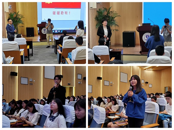 两位教授尚未开讲就赢得在场同学们的阵阵掌声。董文霞教授首先和同学们分享了自己的抗疫经历与感受,他表示自己就是在国家和人民需要的时候做了一名党员应该做的事情,“我是一名党员,疫情就是命令,防控就是责任,我不上谁上”,从主动请缨到第一个危重病人的主动守夜,从坚守医疗队队长职责到做好抗疫一线临时党支部委员工作,是中国共产党员的身份和临时党支部的那面党旗每天激励着他勇担风险、抗住压力、不断前行。他鼓励同学们,要积极向党组织靠拢,始终要以党员的标准要求自己,努力做能做、该做的事情,并且一定要做好。董教授的抗疫经历和作为一名共产党员矢志不渝的追求和理想,深深震撼着现场每一位同学!