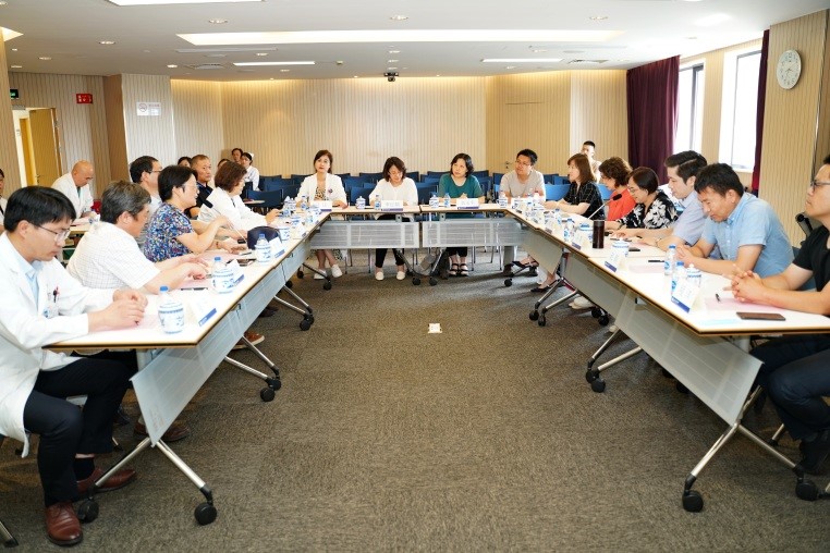 附属同仁医院调研交流。院长马鑫、党委副书记奚晓岚、副院长赵鹏、陈雪及系部主任等其他相关成员参加调研座谈会。同仁医院党委书记蒋利、院长马骏、副院长陶琨、党委副书记郑涛、虹桥国际医学研究院执行院长郭锡熔等陪同调研。座谈会在同仁医院行政楼602会议室举行。