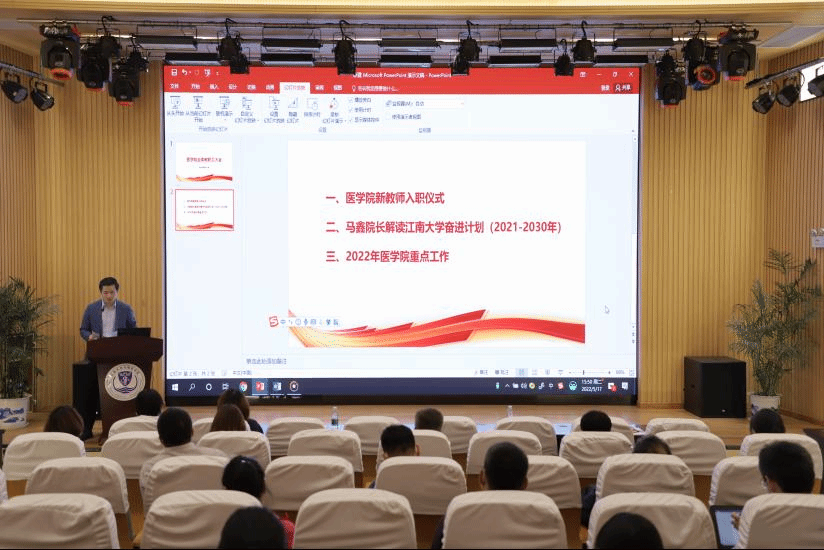 各条线重点工作进行了介绍,并强调医学一级博士点建设是整个一年工作的重中之重,是学院实现高质量发展的关键所在,学院将会举全院之力推进博士点建设工作,希望全院教职工凝心聚力、坚定信心,以实实在在的工作成效助力学院的快速发展。