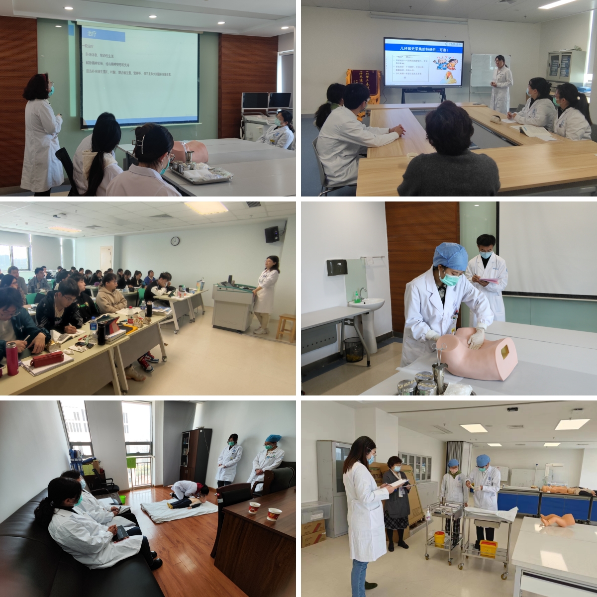 附属医院开展临床教学检查。首先,专家组召开临床教学工作汇报会议,附属医院副院长曹宏、教育处副处长董文霞、李蕾、各教研室主任出席会议,骨干教师代表和实习生代表参加会议。会上,曹宏副院长致欢迎辞,董文霞副处长作临床教学工作汇报,从医院简介、临床教学概况、后2.5年临床教学任务、教学活动和教学成果等方面详细介绍了附属医院临床教学工作。而后,专家组通过考察桥梁课程理论教学、教学查房、病例讨论、小讲课、学生临床技能操作、召开实习生座谈会等形式,全面了解附属医院的临床教学情况及临床教学质量。最后,专家就本次教学检查中发现的问题进行了反馈,双方友好交流了临床教学工作经验。