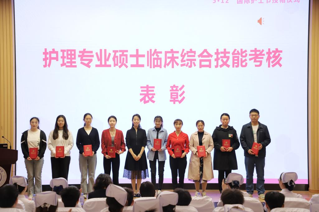 护理系教师柳丰萍的领誓下进行庄严宣誓。包羽为护理专业硕士临床综合技能考核获奖同学颁发表彰证书。护理专业学生李卓然作为学生代表发言并为各附属医院及91制片