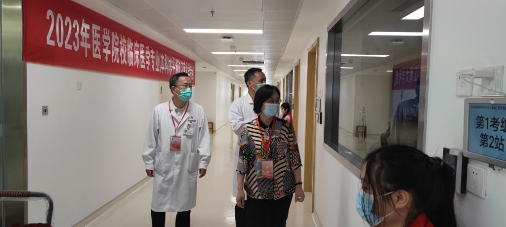 党委书记向琪和附属医院副院长陆华巡视技能考试考场
