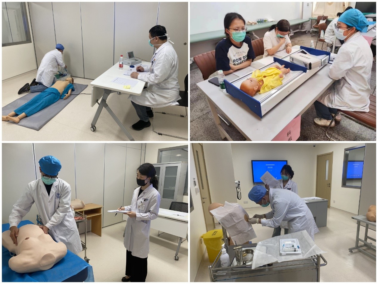 临床综合技能考核分为临床客观结构化多站考核(Objective Structured Clinical Examination, OSCE)和计算机模拟病例(Computer-based Case Simulations,CCS)考核。OSCE共设置13站,包括内科综合病例站、外科综合病例站、妇产科综合病例站、儿科综合病例站、神经科综合病例站、传染科综合病例站、内科操作站、外科操作站、妇产科操作站、儿科操作站、急诊操作站、辅助检查站和病历书写站。CCS设置内科、外科、妇产科和儿科4个病例,利用治趣临床诊疗思维训练系统进行在线考核。临床综合技能考核在两家附属医院临床技能中心进行,技能中心做了周密的策划和准备,精心布置考场,共派出考官、SP及考务人员近百人参与考试工作。