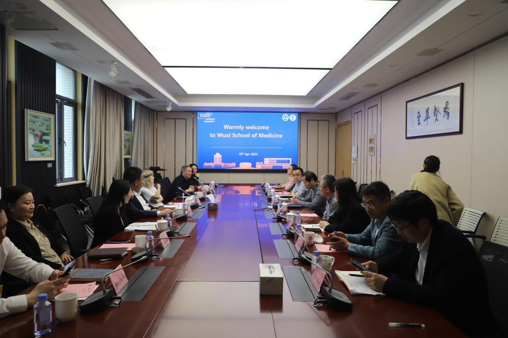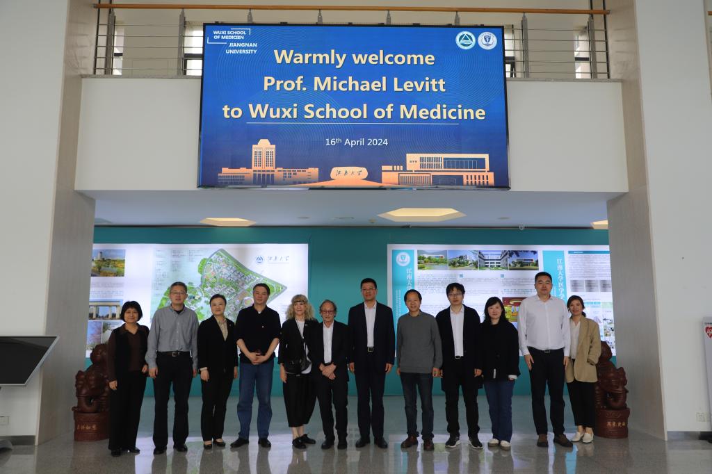 会上, 孙宁代表学院对Michael Levitt院士及其团队一行的到来表示热烈欢迎。Michael Levitt院士回顾了之前来访无锡时的情景,并介绍了在计算生物化学领域中的主要工作和成就。作为Michael Levitt院士多年的工作合作伙伴,海健百世生物制药公司创始人马剑鹏介绍了现阶段人工智能计算方法在生物体系中的应用研究。孙宁和吴小俊作为医学和人工智能学的专家,也探讨了如何通过各方资源、专业知识和设施设备的不断整合,探索新的研究前沿,有效应对全人类面临的风险挑战。陶波指出,科研项目的开发有利于吸引优秀人才,为无锡经济社会发展添油加力,为毕业生留在本地就业提供良好的环境。在自由讨论环节,多方围绕合作研究这一中心内容进行了深入探讨,一致认为可以实现多学科交叉融合,为无锡医药事业做出更大的贡献。
