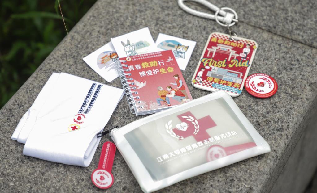 附属医院急诊科教师,为志愿者开展专项培训。课程聚焦高风险运动场景下的常见损伤类型与应急处置方法,涵盖心肺复苏、止血包扎、脱臼扭伤、中暑晕厥等急救要点,通过现场讲解与操作演练相结合的方式,切实提升成员的知识储备与操作能力,为后续服务奠定坚实基础。同时,团队设计多款实用文创产品,包括急救包、冰袖、降温贴、宣传手册、特色徽章等,将急救知识通过实用物品融入群众日常生活,在寓教于物中增强社会参与度和传播效能。