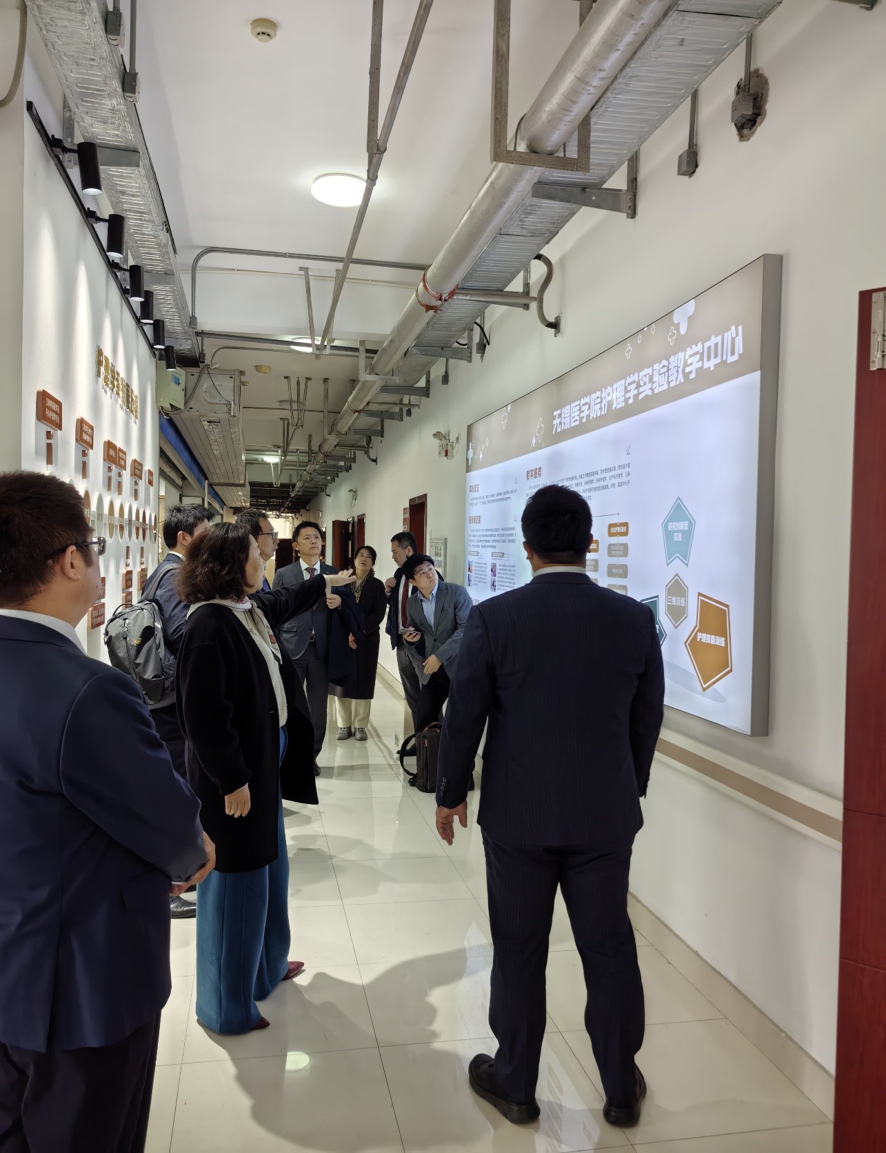 ,详细介绍了学院的科研平台建设与人才培养体系;蒋玉宇陪同调研了护理系科研场地、教学设施,重点介绍了护理实验教学中心的硬件设施和教学模式,以及其在提升学生临床实践能力、培养创新科研思维方面所发挥的关键作用。