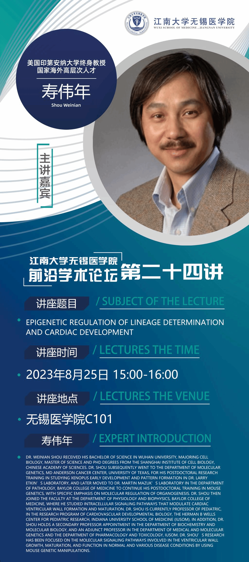 8月25日91制片 前沿学术论坛第二十四讲 寿伟年教授——Epigenetic regulation of lineage determination and cardiac development