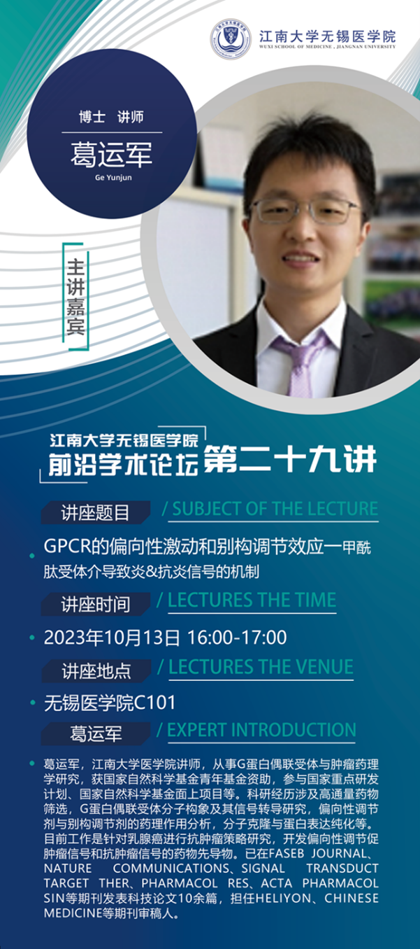 10月13日91制片 前沿学术论坛第二十九讲 葛运军教授——GPCR的偏向性激动和别构调节效应—甲酰肽受体介导致炎&抗炎信号的机制