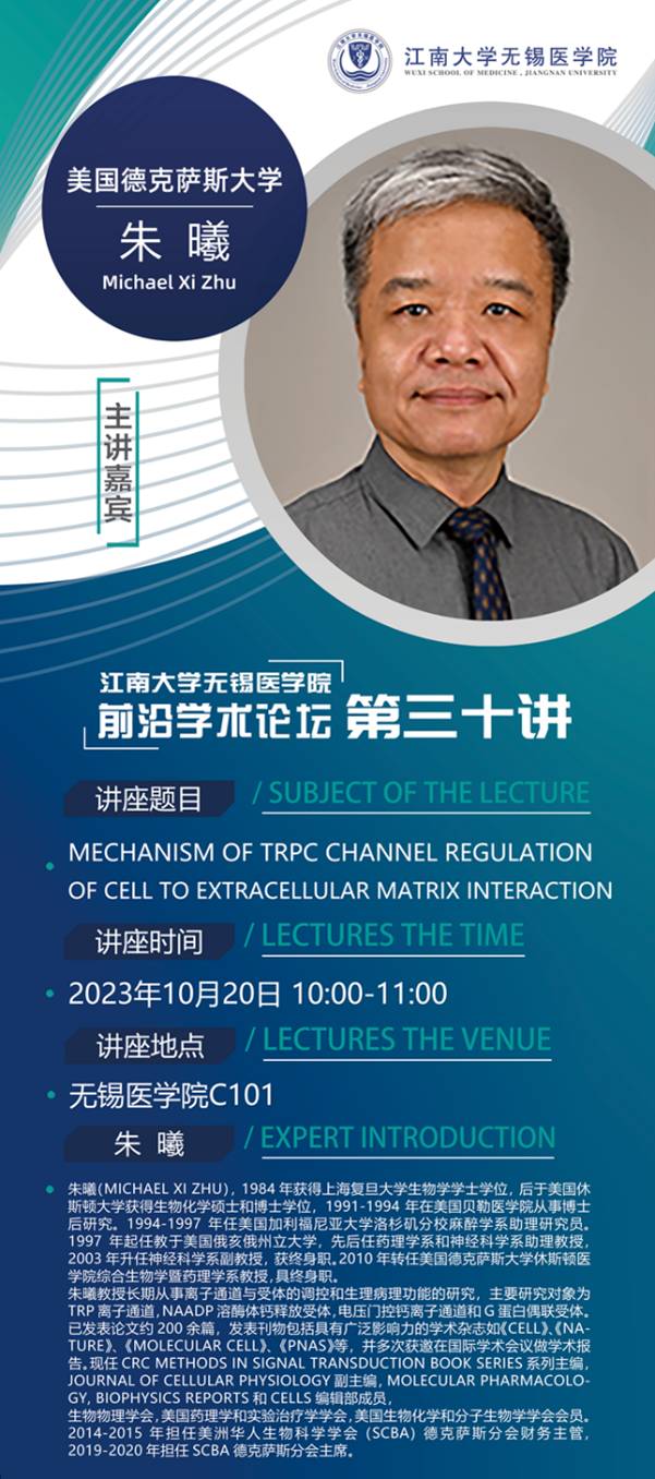 10月20日91制片 前沿学术论坛第三十讲 朱曦教授——Mechanism of TRPC Channel Regulation of Cell to Extracellular Matrix Interaction