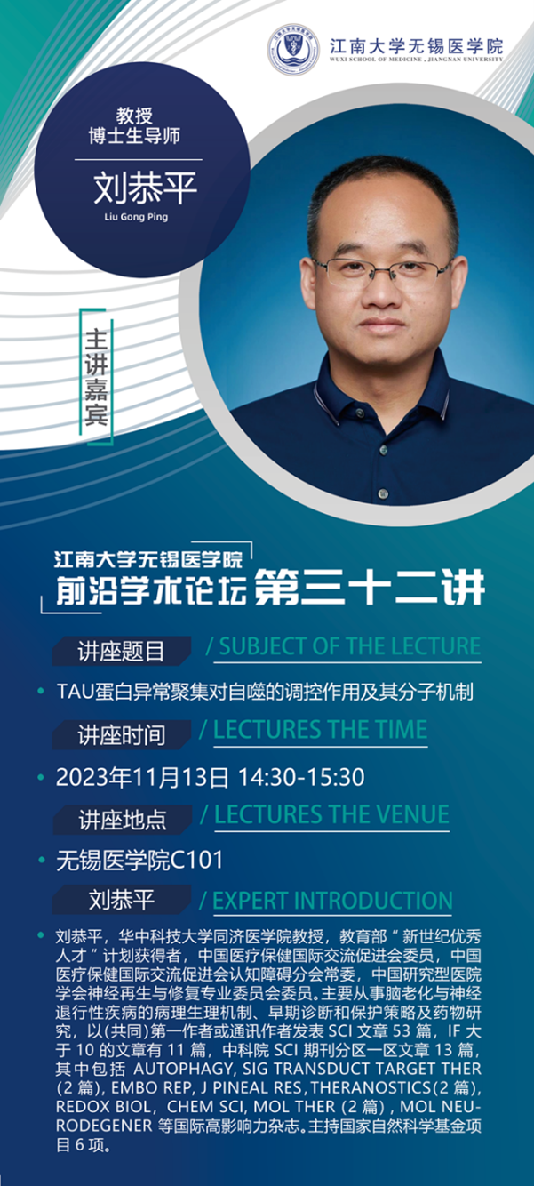 11月13日91制片 前沿学术论坛第三十二讲 刘恭平教授——Tau蛋白异常聚集对自噬的调控作用及其分子机制