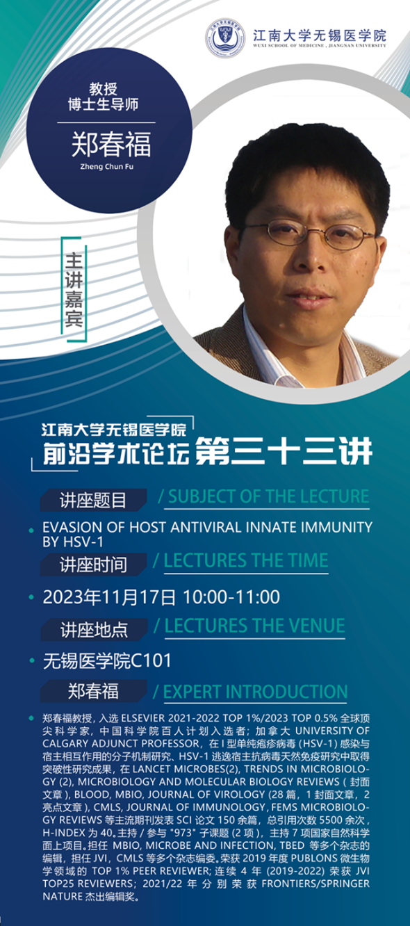 11月17日91制片 前沿学术论坛第三十三讲 郑春福教授——Evasion of host antiviral innate immunity by HSV-1