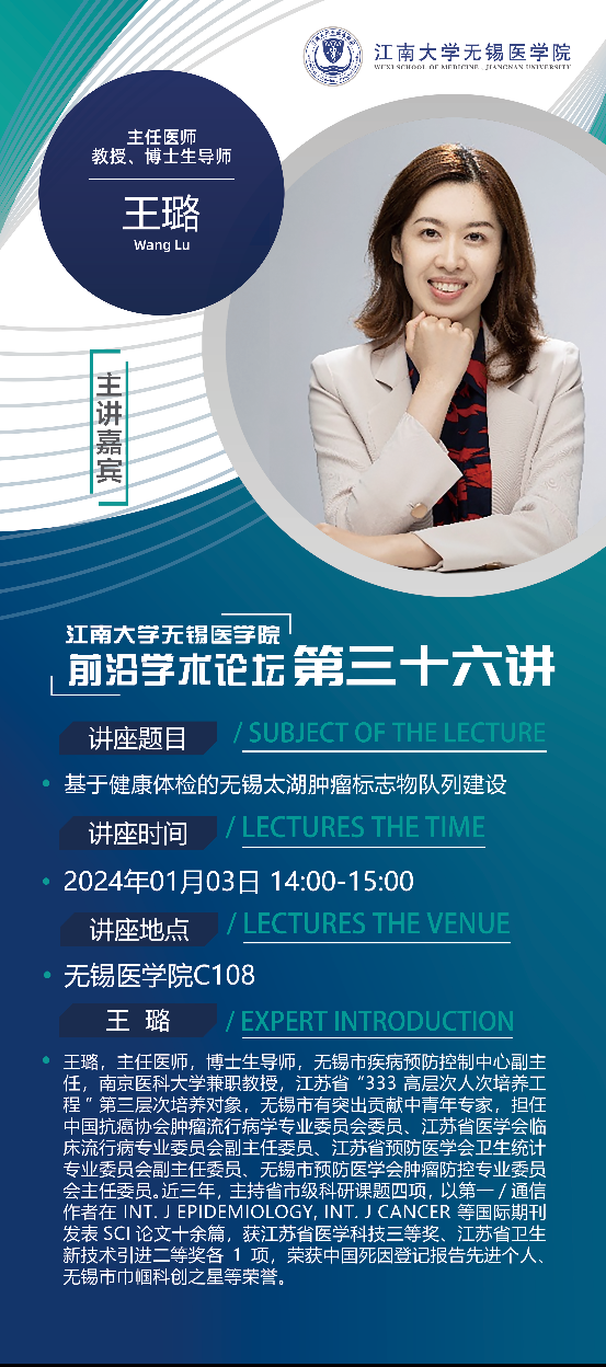 1月3日91制片 前沿学术论坛第三十六讲 王璐教授——基于健康体检的无锡太湖肿瘤标志物队列建设