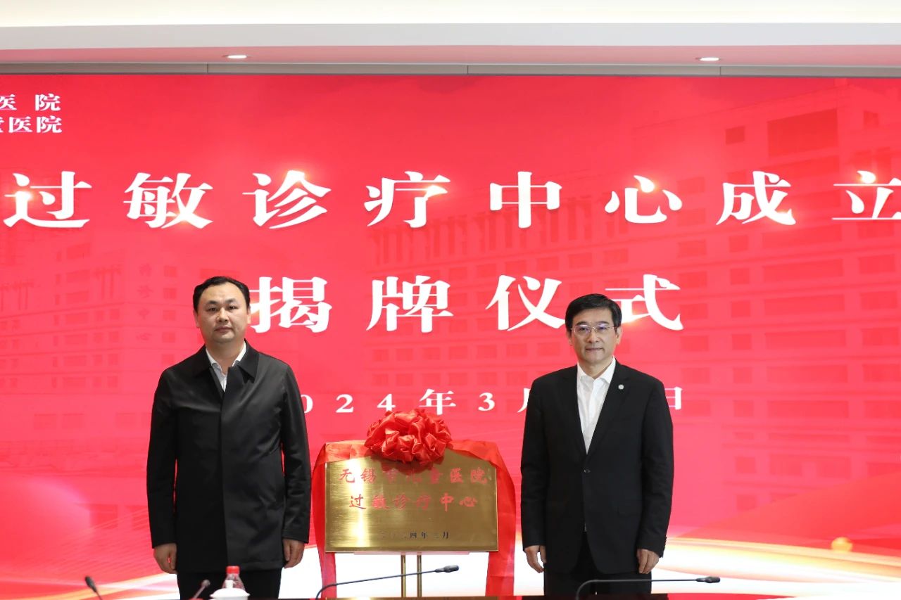 无锡市卫健委副书记王新华与程雷教授为过敏诊疗中心揭牌。