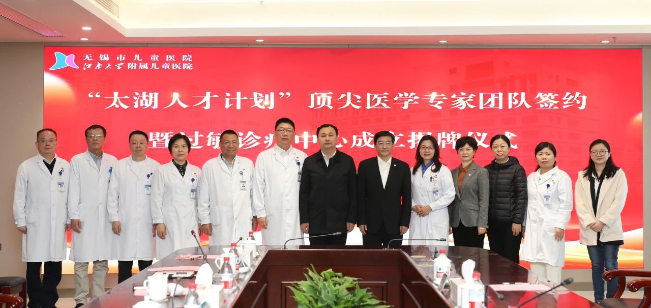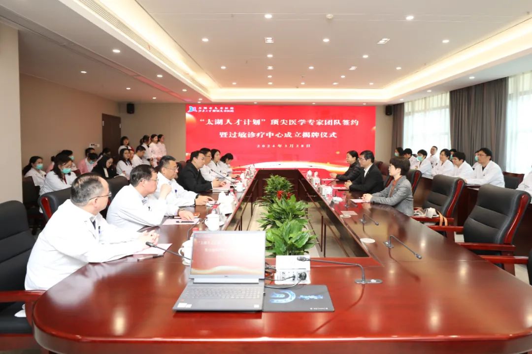 附属儿童医院)在第三会议室举办“太湖人才计划”顶尖医学专家团队签约暨过敏诊疗中心成立揭牌仪式。