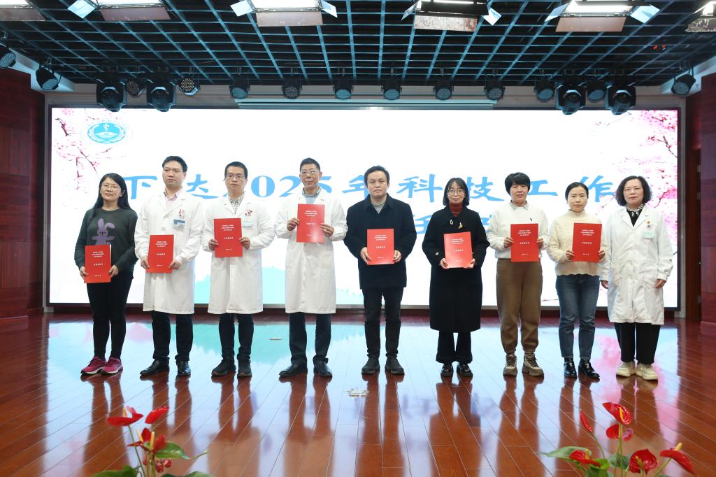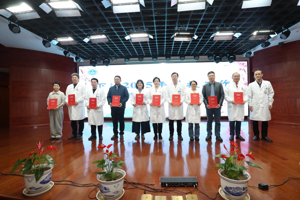 院纪委书记、监察专员华燕,副院长袁浩,总会计师胡斌分别为19个省临床重点专科和8个市临床重点专科下发了2025 年科技工作目标责任书。